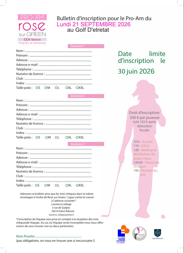 PRO AM CARITATIF ROSE SUR GREEN